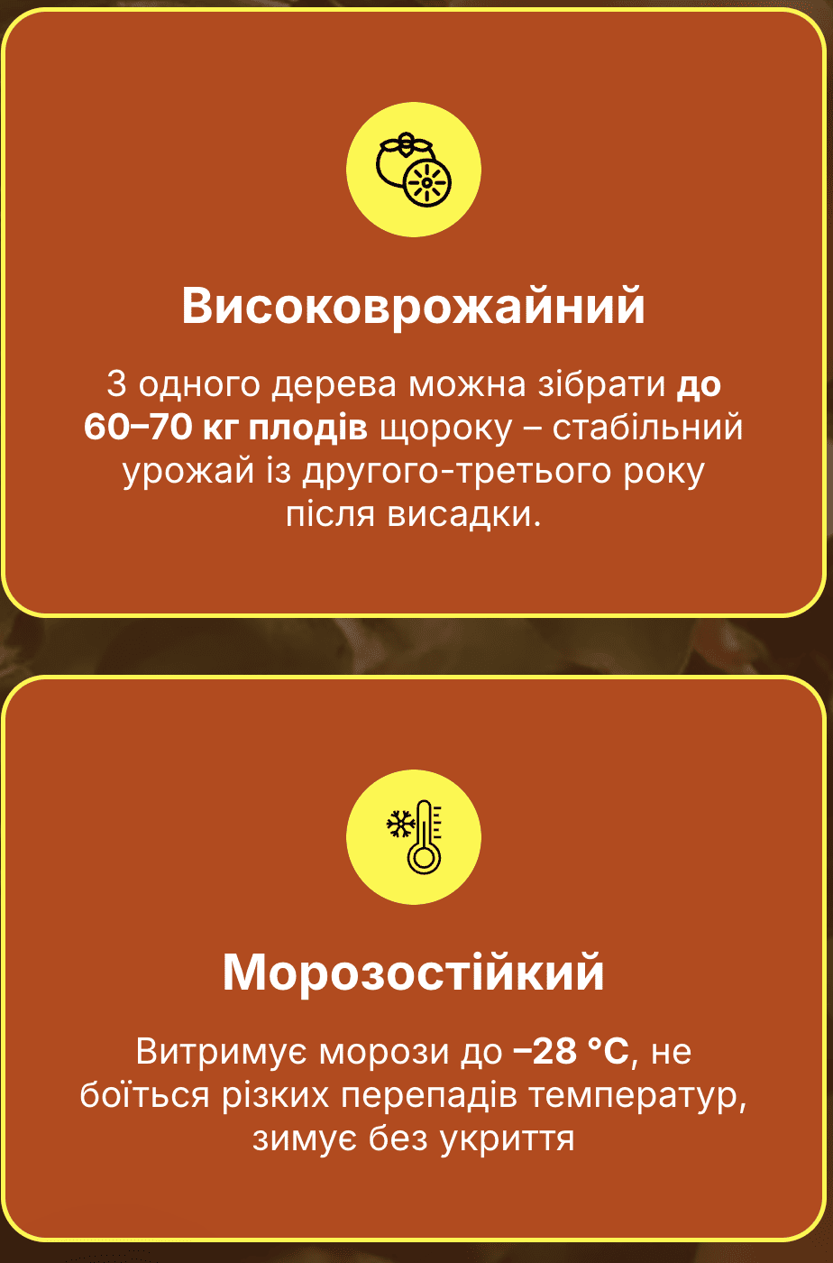 - Урожай уже на 2–3 рік Не треба чекати роками — ваш перший кошик плодів буде зовсім скоро!