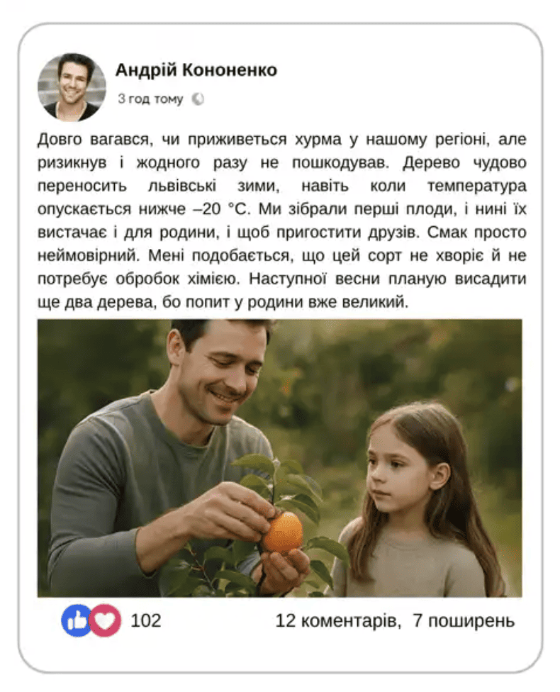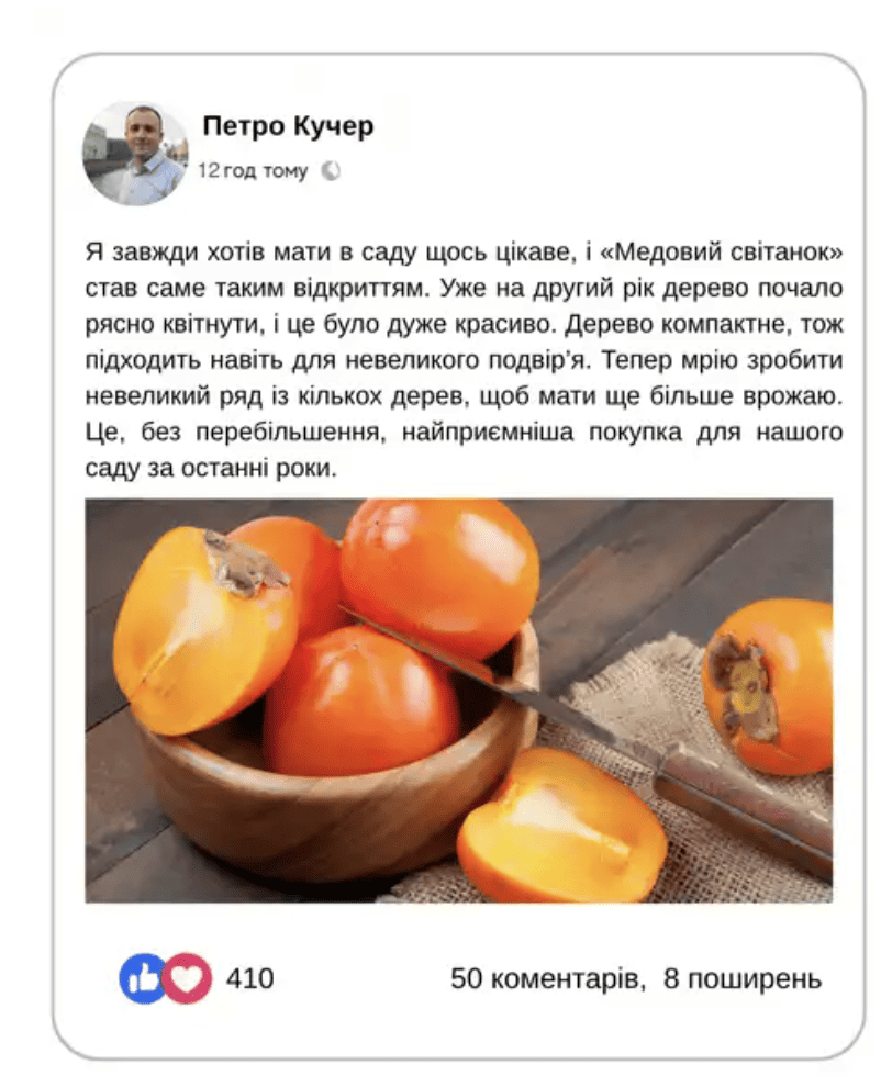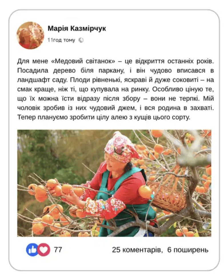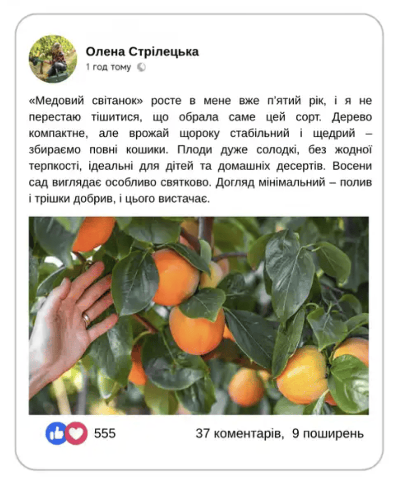 - Дерево, яке дивує сусідів Сучасний сорт, рідкість для українських садів — ідеальний шанс виділитися й першими скуштувати власну хурму.