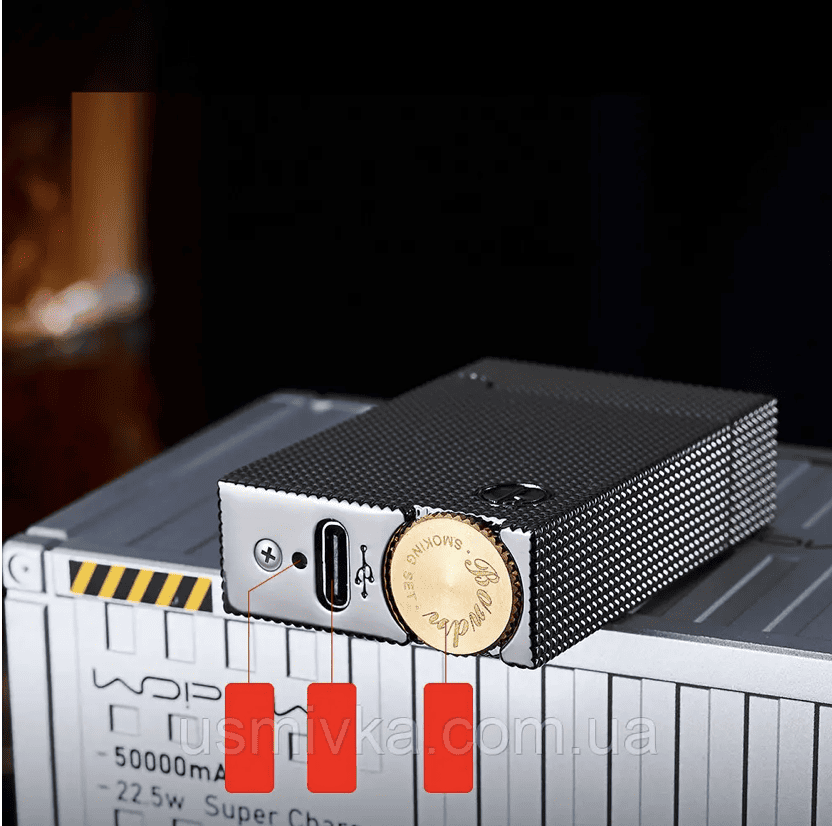 - Комплектація::Запальничка, кабель для зарядки, подарункова упаковка