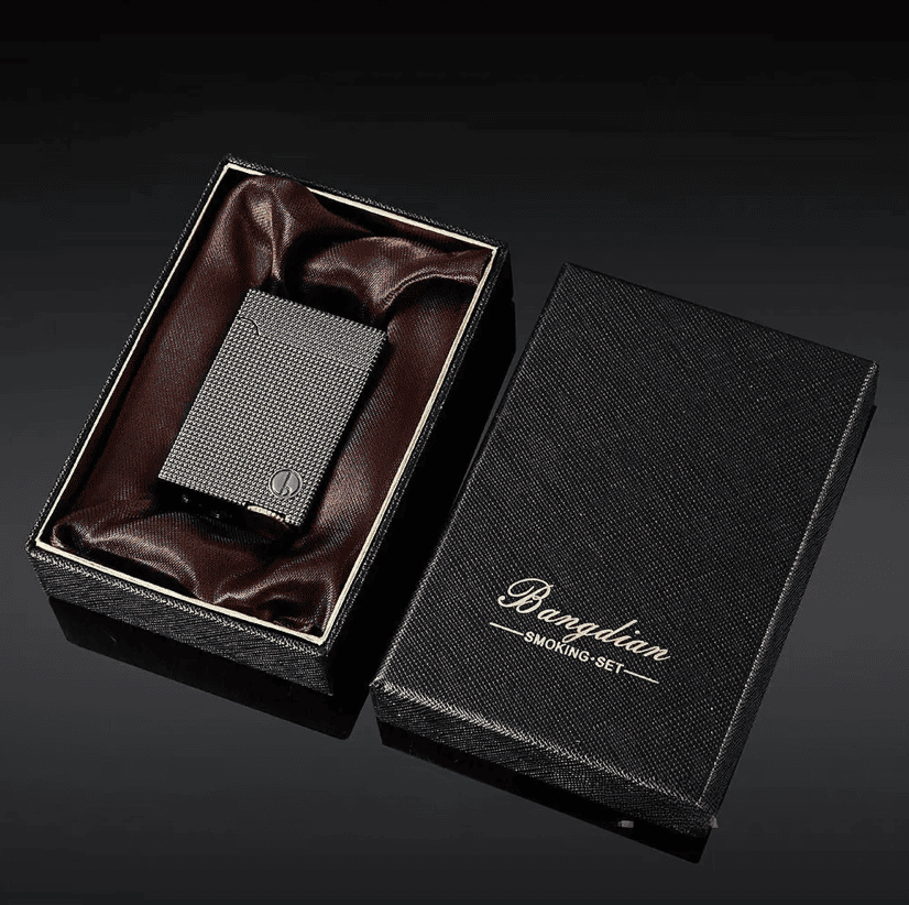 На перший погляд — це класична прямокутна запальничка з благородною фактурою, приємною на дотик. Але всередині ховається щось більше: вбудований імпульсний модуль, який спалахує гніт без допомоги кременя або коліщатка. Достатньо постукати по корпусу, подути або просто вимовити голосову команду — і ви активуєте імпульсну дугу, що підпалює бензиновий гніт.